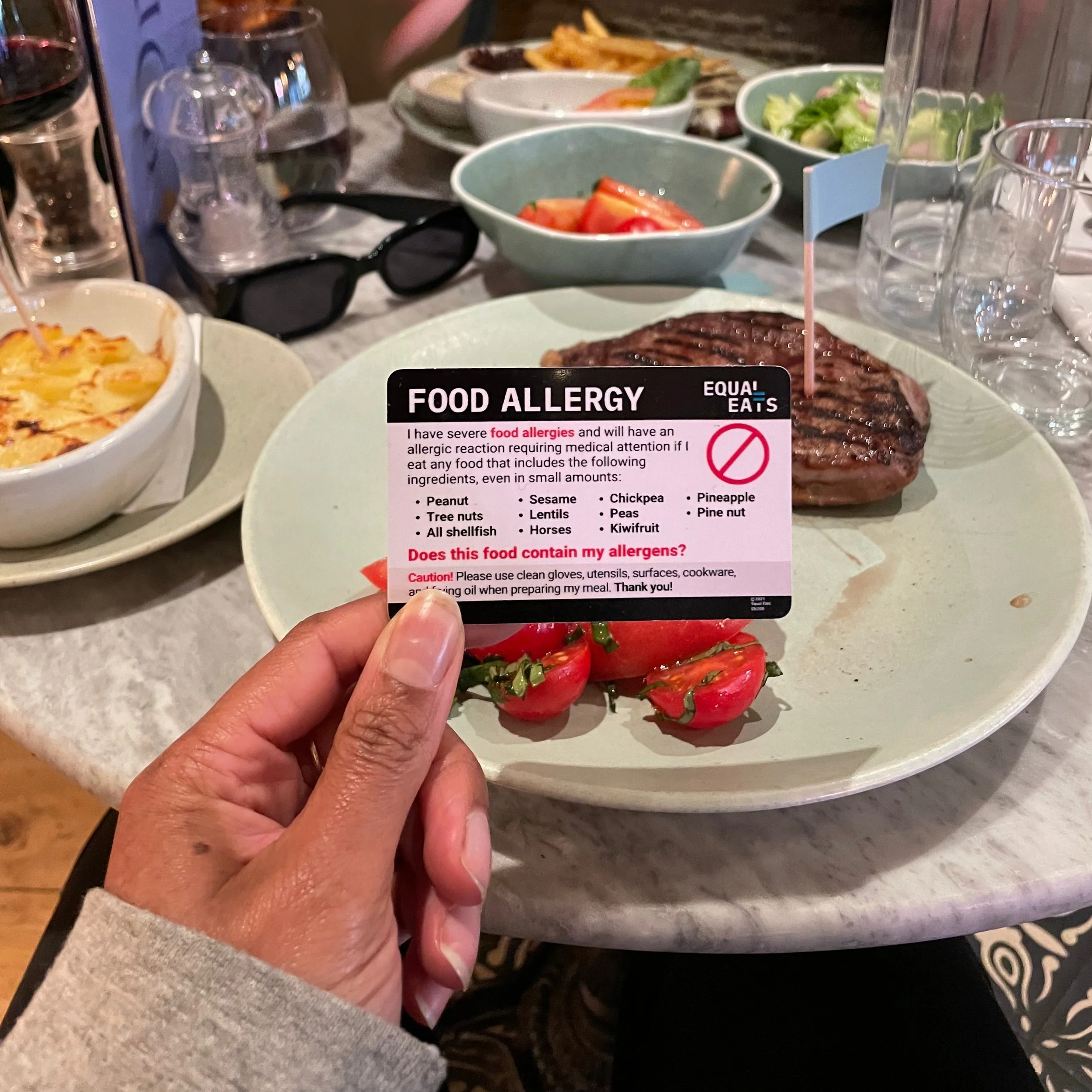 Immediately the servers were kind and encouraging. They did not bat an eye at my allergies (it was exactly like all the Cotes I have ever been to - excellent allergen awareness & education. The only downside was, I usually have the garlic bread (Fougasse) but they explained to me this time that theirs was may contain tree nuts and the chef and I were not happy with that - so I forgoed it. It was an incredible like always, and I felt much more comfortable that the first night I had a safe and comfortable meal.